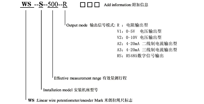 三、WS-S拉繩位移傳感器的輸出類型及接線定義: