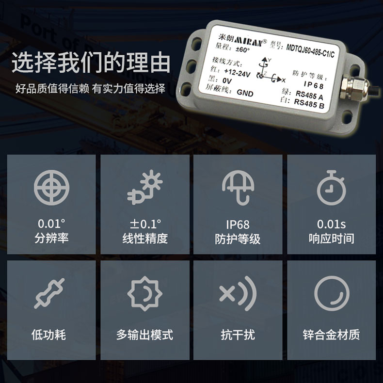 特別值得一提的是,米朗科技最新推出的六軸動(dòng)態(tài)傾角傳感器,其采用非接觸式測(cè)量,能實(shí)時(shí)輸出當(dāng)前的姿態(tài)傾角,使用簡(jiǎn)單,內(nèi)部集成精度高的AD以及陀螺單元,可實(shí)時(shí)對(duì)非線(xiàn)性、正交耦合、溫漂及離心加速度進(jìn)行補(bǔ)償,可以大大消除運(yùn)動(dòng)加速度干擾產(chǎn)生的離心誤差,提高產(chǎn)品動(dòng)態(tài)測(cè)量精度,可長(zhǎng)期適應(yīng)在復(fù)雜運(yùn)動(dòng)場(chǎng)景及惡劣環(huán)境中工作。該產(chǎn)品屬于動(dòng)靜雙模測(cè)量傳感器,抗外界電磁干擾能力強(qiáng),適用各類(lèi)大型高強(qiáng)度沖擊振動(dòng)工業(yè)環(huán)境,是工業(yè)自動(dòng)化控制測(cè)量姿態(tài)的理想選擇。