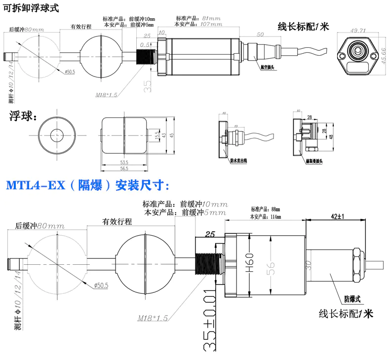 MTL4本安型磁致伸縮液位傳感器安裝尺寸: