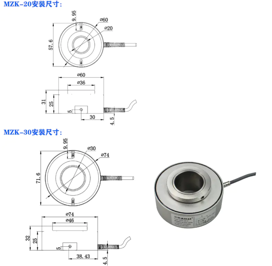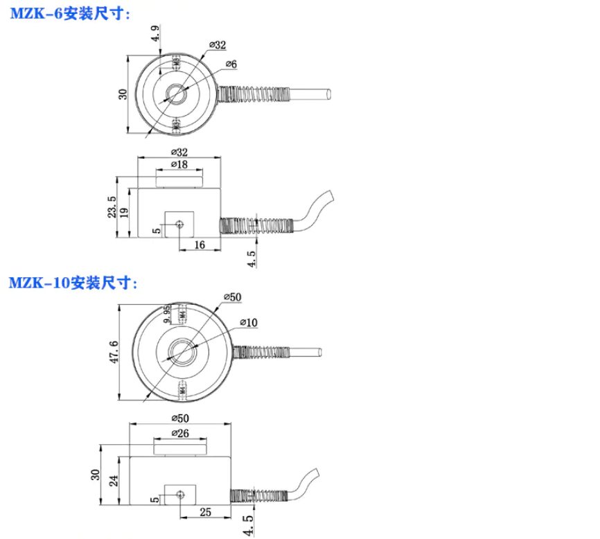 MZK-(6mm-50mm)中空軸角度傳感器安裝尺寸:
