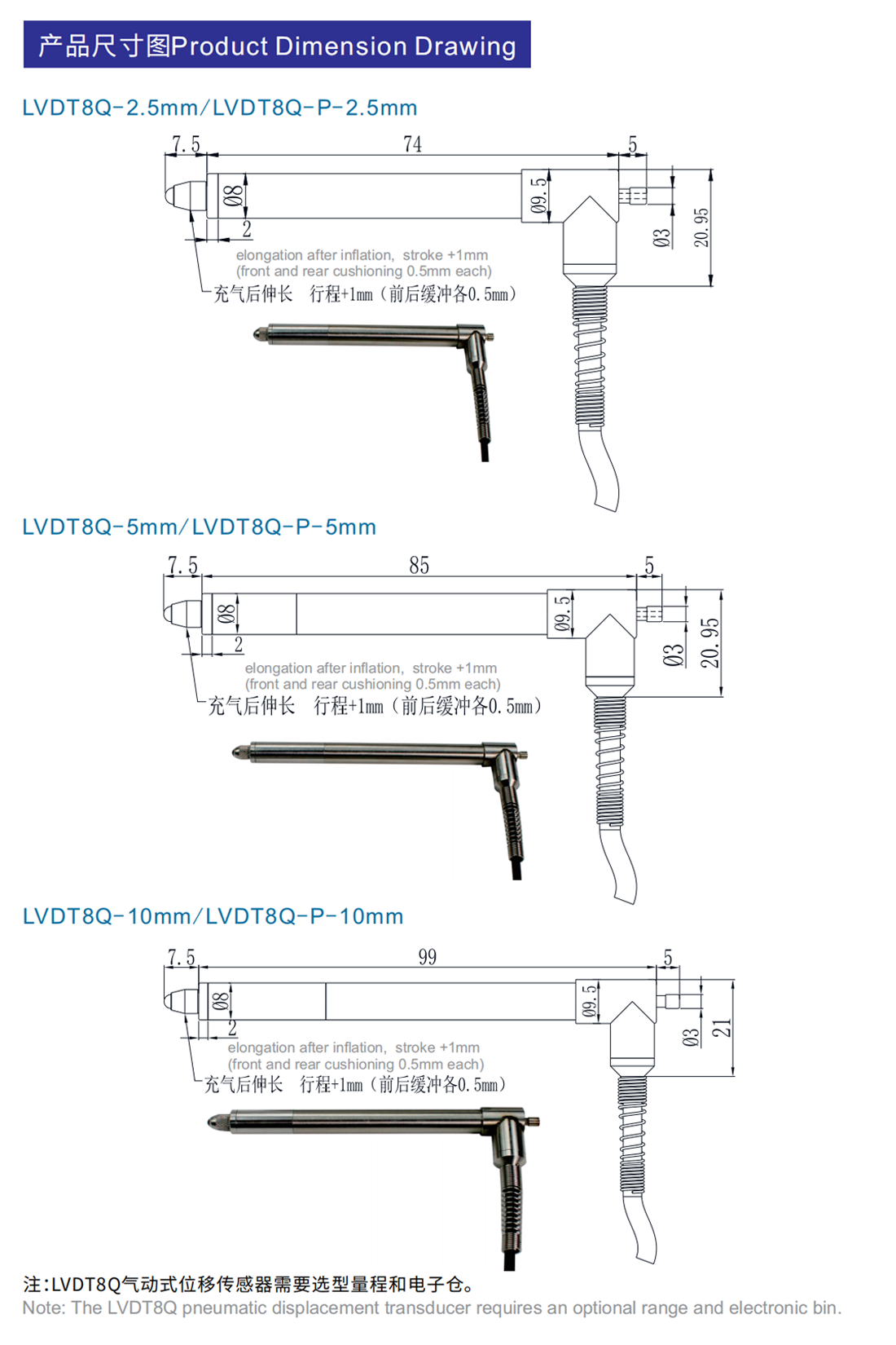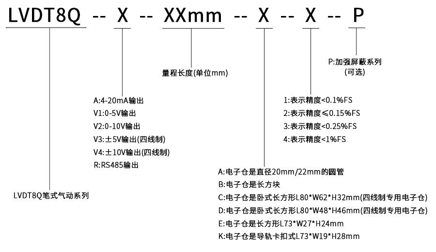 LVDT8Q-A-2.5mm-A-1、LVDT8Q-A-5mm-A-1、LVDT8Q-A-10mm-A-1。