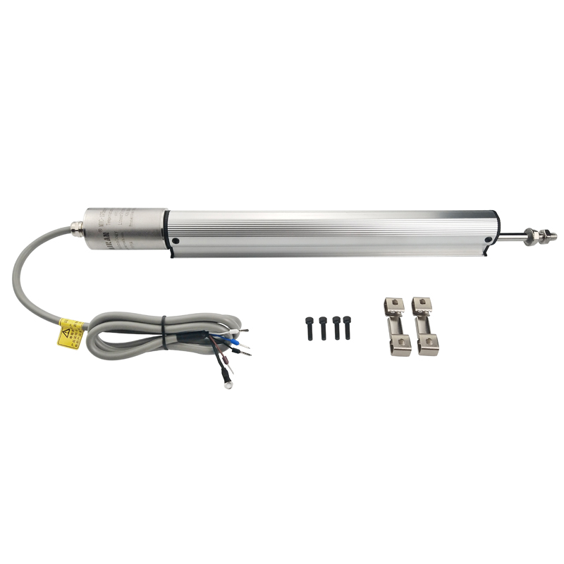 拉桿式磁致伸縮位移傳感器的原理是利用兩個不同磁場相交時產(chǎn)生一個應(yīng)變脈沖信號,然后計算這個信號被探測所需的時間周期,從而換算出準(zhǔn)確的位置。這兩個磁場一個來自磁環(huán)中的永磁鐵,另一個來自傳感器電子倉中的電子部件產(chǎn)生的激勵脈沖。激勵脈沖沿傳感器內(nèi)用磁致伸縮材料制造的波導(dǎo)絲以聲速運行。當(dāng)與磁環(huán)中的永磁場相交時,由于磁致伸縮現(xiàn)象,波導(dǎo)絲產(chǎn)生的機械振動形成一個應(yīng)變脈沖。應(yīng)變脈沖很快便被電子倉中的感測電路探測到。拉桿式磁致伸縮位移傳感器從產(chǎn)生激勵脈沖的一刻到應(yīng)變脈沖被探測到總的時間乘以固定的聲速,我們便能準(zhǔn)確的計算出磁鐵的位置變化。這個過程是連續(xù)不斷的,所以每當(dāng)磁環(huán)位置改變時,新的位置會被迅速測量出來。由于輸出信號是真正的值,而不是比例的或需要再放大處理的信號,所以不存在信號漂移或變值的情況,更不必像其他傳感器那樣需要定期重標(biāo)。